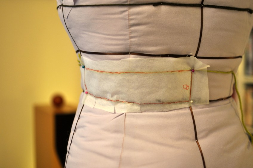 Back waistline Published April 15, 2013 at 1600 × 1063 in Back waistline This pattern piece becomes more curved than I thought when laid flat (swayback and turning darts into curve).