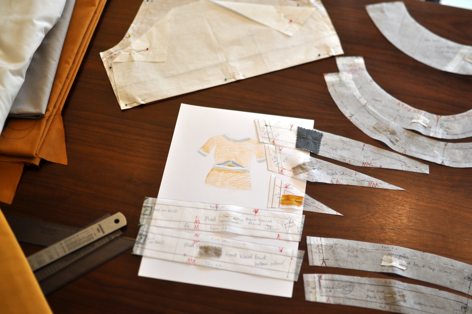 Deciding the colours Published April 15, 2013 at 1600 × 1063 in Deciding the colours Little pieces of fabric stuck to the pattern pieces to avoid confusion. So proud.